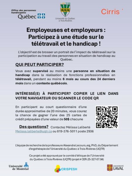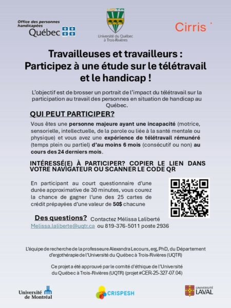 L’UQTR recrute pour une étude sur le télétravail et le handicap